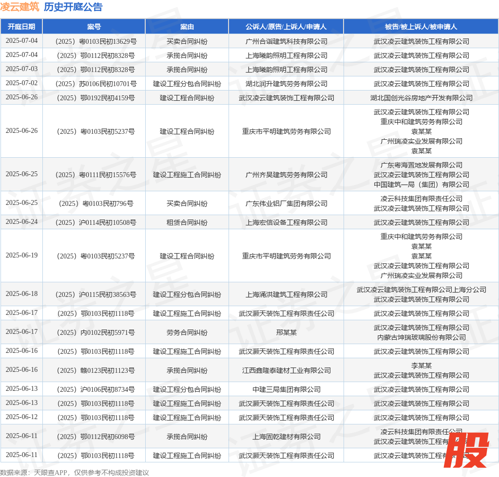 本站消息大资本优配大资本优配,根据天眼查APP显示,近日公布了一则武汉凌云建筑装饰工程有限公司作为被告/被上诉人的开庭公告,详细内容如下: