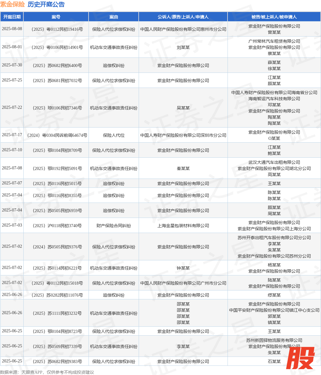 本站消息神机策,根据天眼查APP显示,近日公布了一则紫金财产保险股份有限公司作为被告/被上诉人的开庭公告,详细内容如下: